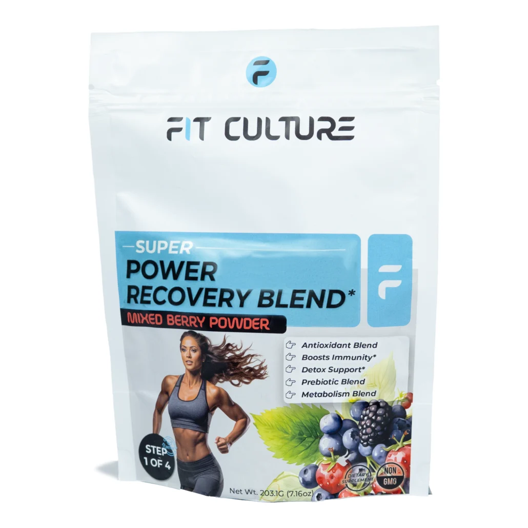 Power Recovery Blend delivers a synergistic mix of antioxidants, detoxifying agents, prebiotics, and metabolism boosters—all in one tasty, Mixed Berry scoop.